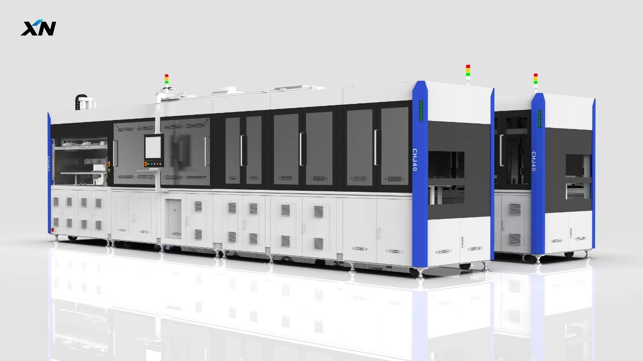 展会现场,小牛携其搭载IFC技术的CHJ40直接覆膜串连机闪亮登场。这款设备以现代感十足的蓝黑配色和高端精致的新结构设计吸引了众多参观者的目光。在现场演示中,CHJ40设备展示了其独特的无主栅电池覆膜串连过程,通过灵活的运载机构和精密的控制系统,实现了电池片、焊带以及正背面胶膜的一次性柔性互连成串。这一创新技术不仅解决了传统焊接带来的隐裂、断栅、短路等问题,还通过柔性互连技术解决了小间距和负间距层后隐裂问题,且无需使用助焊剂,有效避免了机构老化、助焊剂污染以及电极腐蚀等问题。